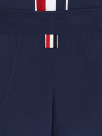 DETAILS & FIT Pintuck mid-thigh shorts in navy stretch viscose with intarsia side stripes. Drawstring waist with striped ties. Slant side pockets. Signature striped grosgrain loop tab at back waist. Model is 5'10" (178 cm), wearing size 40 75% Viscose, 25% Polyester Made in Italy FKQ004AY5501415