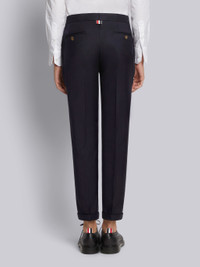 DETAILS & FIT Low rise skinny trouser in navy super 120s twill. Tab front closure, creased legs with narrow cuff. Slip side pockets, brass button-fastening back welt pockets. Signature striped grosgrain loop tab at back waist. Model is 5'10" (178 cm), wearing size 40 100% Wool Made in Italy FTC025A00626415