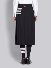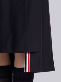 Navy Wool Plain Weave Pleated 4-Bar Skirt