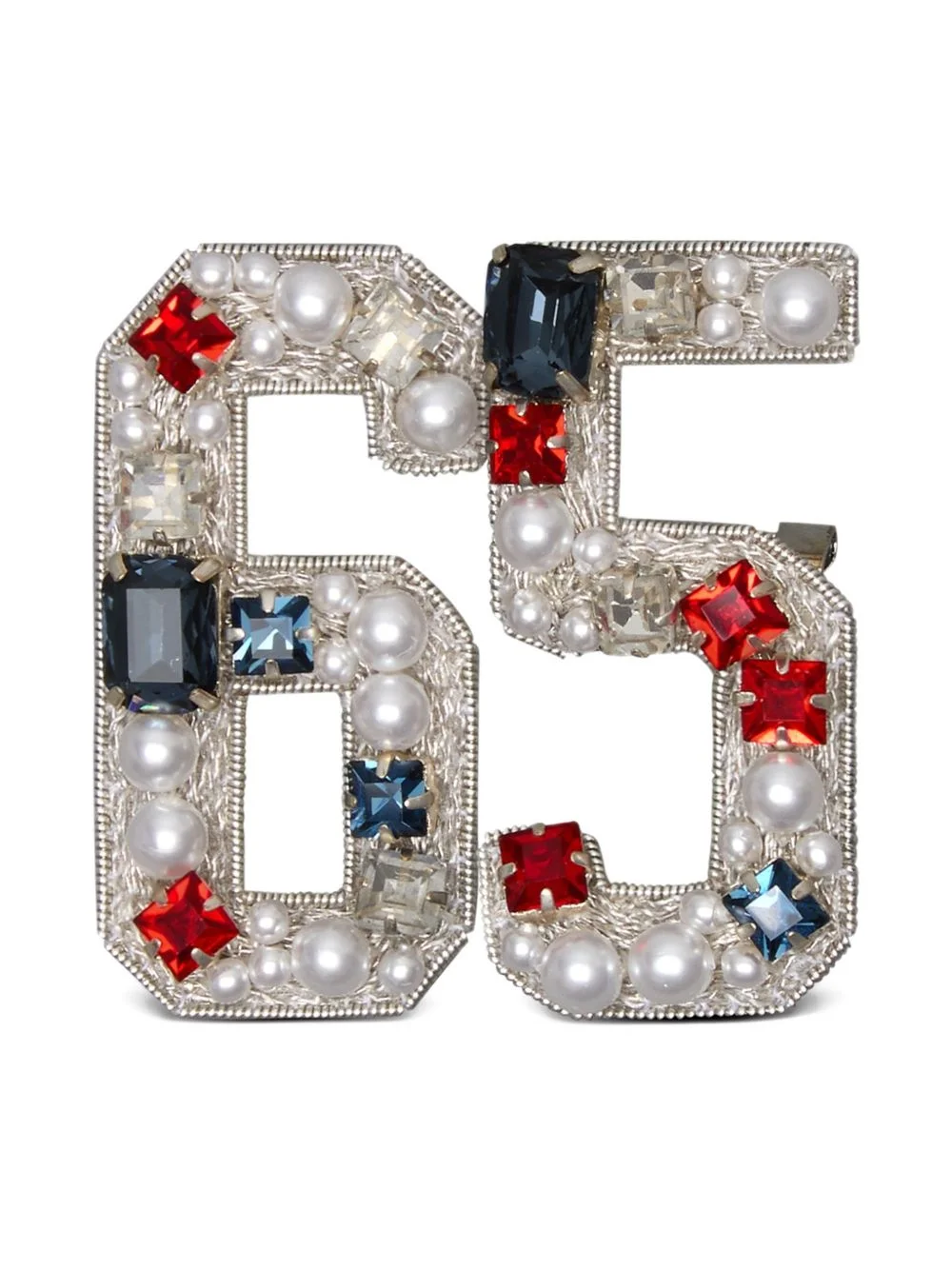 number-motif brooch Highlights - Silver-tone - Faux-pearl detailing - Rhinestone embellishment - Number motif Imported