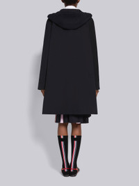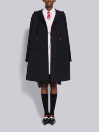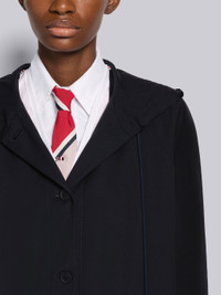 DETAILS & FIT Hooded knee-length parka in navy nylon tech. Front button closure, drawstring hood with brass aglets, flap front pockets. Striped lining with interior pockets and name tag. Signature striped grosgrain loop tab at back of neck. Model is 5'10" (178 cm), wearing size 40 Made in Italy 68% Polyester, 32% Cotton FOC770AF0185415