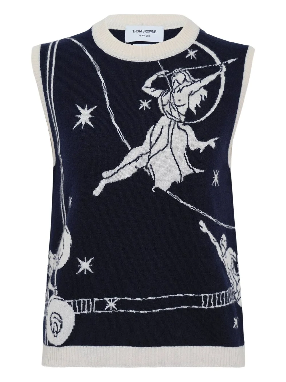 graphic vest Highlights - Blue - Round neck - Sleeveless - Ribbed hem Imported Composition Fabric 100% Washing instructions Read Manufacturer Guidelines