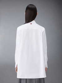 A playful interpretation of a Thom Browne essential, our Oxford 4-Bar Bow Tie Blouson exhibits quality craftsmanship and meticulous tailoring. Front button closure Signature grosgrain trim at neckline Button down point collar patch chest pocket Name tag applique above hem Buttoned cuffs Signature striped grosgrain loop tab at back of neck Model is 5' 10" (178cm), wearing size 40 100% Supima Cotton Made in Italy FLL139A-06496-100