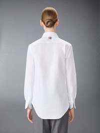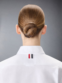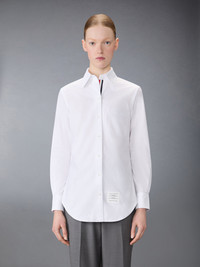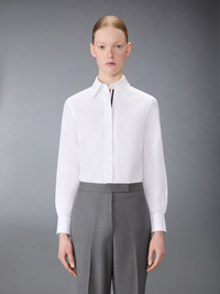 Timeless sophistication. This classic closet staple is elevated with our signature grosgrain trim at the placket—a subtle yet striking detail. Pair it with any of our pleated skirts or trousers. Front button closure Chest patch pocket Name tag applique Signature striped grosgrain loop tab Model is 5'10" (178 cm), wearing size 40 100% Cotton Made in Italy FLL005E-F0313-100