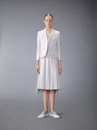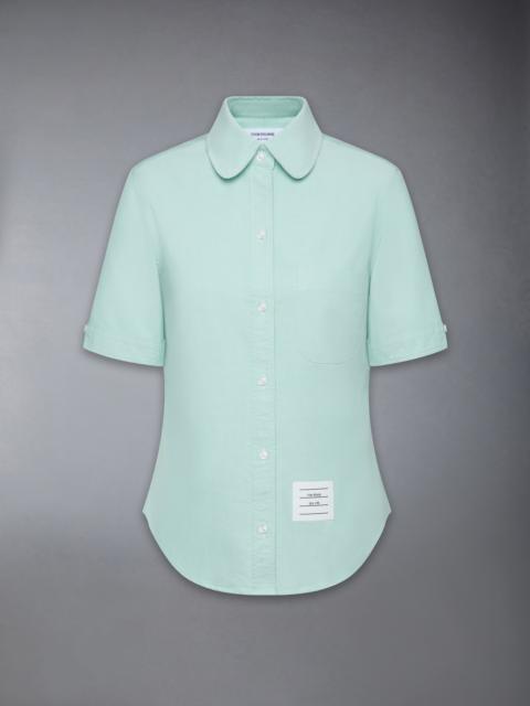 Effortless style meets sophistication with this classic Round Collar Oxford Short Sleeve Shirt, featuring signature Thom Browne emblems throughout. Pair it with one of our signature trousers. Front button closure Front patch pocket Name tag applique above hem Pleated back yoke with locker loop Signature striped grosgrain loop tab Model is 5'10" (178 cm), wearing size 40 100% Cotton Made in ITALY FLL206A-02188-740