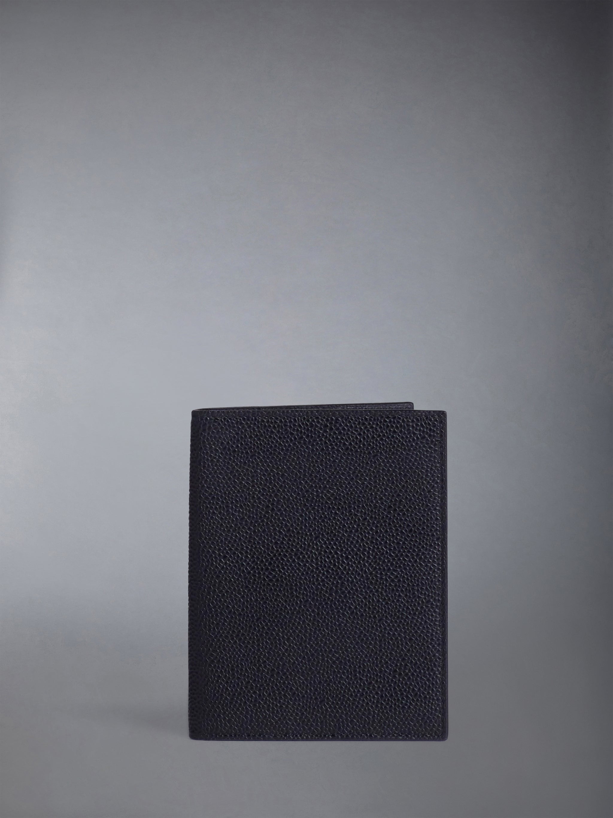 Black Passport Holder Pebble Grain Leather Tricolor Stripe Lining 3 Card Slots 2 Note Compartments Signature Grosgrain Loop Tab MAW034A-00198-001