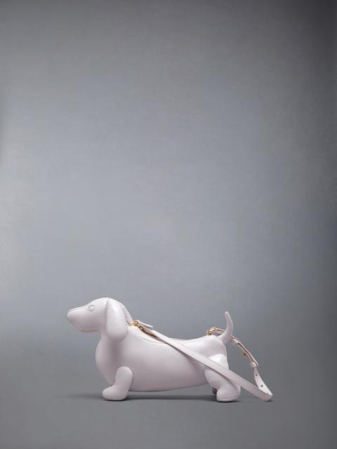Our Pebble Grain Hector Baguette Bag. Heralded as the most famous dog muse in fashion, Thom Browne’s very own dachshund Hector served as the inspiration behind this quintessential piece. Brass zip top closure Adjustable leather shoulder strap Striped lining Measurements: Length 32 x Height 21 x Width 13 cm 100% Calf Full Grain Leather Lining: 100% Polyester Made in Italy FAP341A-00198-680