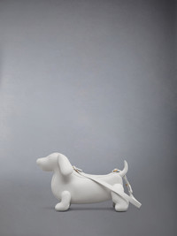 Our Pebble Grain Hector Baguette Bag. Heralded as the most famous dog muse in fashion, Thom Browne’s very own dachshund Hector served as the inspiration behind this quintessential piece. Brass zip top closure Adjustable leather shoulder strap Striped lining Measurements: Length 32 x Height 21 x Width 13 cm 100% Calf Full Grain Leather Lining: 100% Polyester Made in Italy FAP341A-00198-100