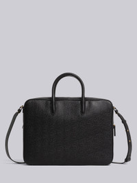 DETAILS & FIT Business bag in black pebble grain leather with adjustable shoulder strap. Brass zip closure, rounded double top handles. Exterior folio pocket, interior zip pocket, striped lining. Gold foil printed logo and signature striped grosgrain loop tab at exterior folio. 100% Calf Full Grain Leather Lining: 100% PL Made in Italy MAG410A00198001