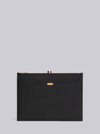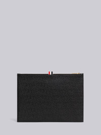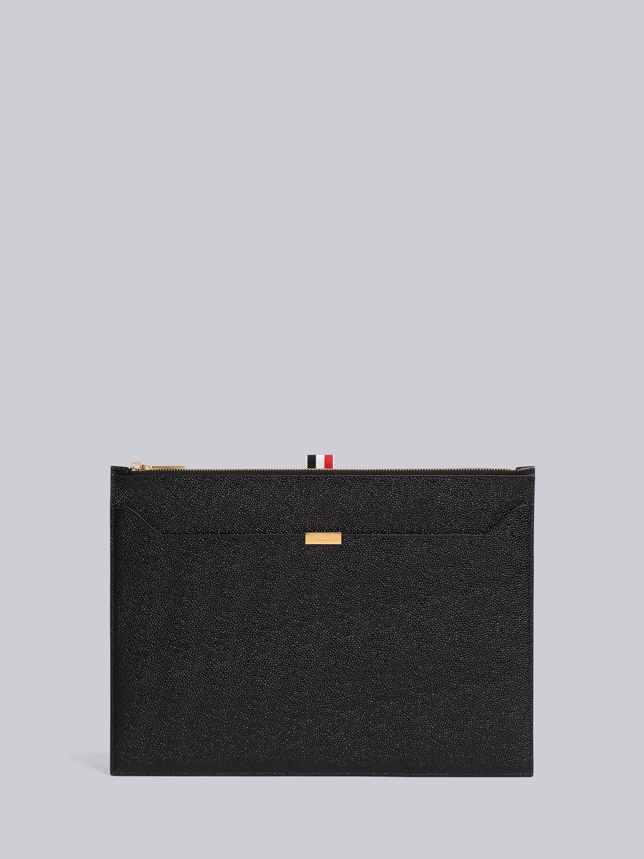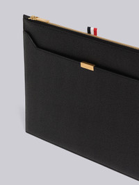 DETAILS & FIT Medium document holder in black pebble grain leather with brass lock detail. Zippered top closure, exterior slip pocket. Signature striped grosgrain loop tab at entry. Made in Italy UAC005A00198001
