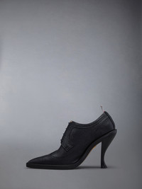 Crafted with the highest quality of classic shoemaking, our Pebble Grain Heeled Longwing Brogue is a staple in Thom Browne's legacy. Features an elongated toe, leather sole, and 105mm curved heel. Lace up closure Perforated broguing throughout Tonal leather sole 105mm curved heel Striped insole and leather lining Signature striped grosgrain loop tabs at heels Upper: 100% Calf Leather Sole: 100% Calf Leather Lining: 100% Goat Leather Lining2: 100% Lamb Leather Made in Italy FFH188A-06257-001