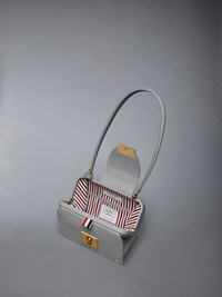 DETAILS & FIT With a smaller frame, our Pebble Grain Mrs. Thom Triangle Bag is an elegant and a more feminine take on our Mr. Thom silhouette. Rounded leather handles Brass lock closure at front Luggage tag Tricolor stripe lining Interior vent pocket Signature striped grosgrain loop tab 100% Calf Full Grain Leather Lining: 100% Lamb Leather Made in Italy FAP444A-00198-055