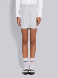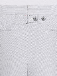 DETAILS & FIT Classic backstrap short in grey and white pincord. Tab front closure, creased legs, notched side vents. Slip side pockets, button-fastening back welt pockets, adjustable buttoned backstrap. Classic - Fit 1. Made in Italy 100% Cotton FTC468A06272035