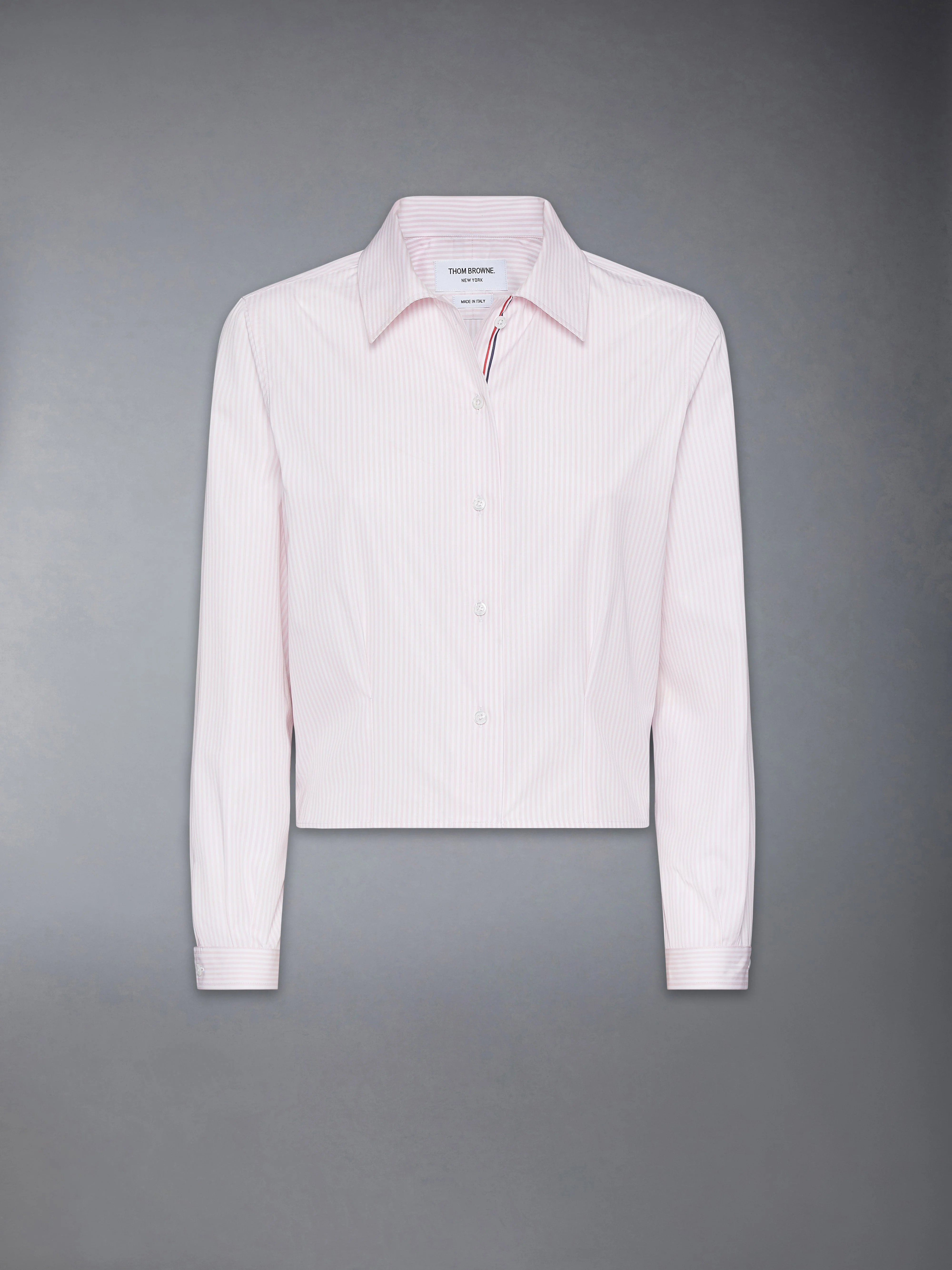 DETAILS & FIT Our University Stripe Poplin Tucked Blouse embodies the season, featuring crisp tailoring and a fine poplin fabric. This piece will serve as a staple in your polished wardrobe for years to come. Front button closure Signature striped grosgrain placket Pleated back yoke with locker loop Signature striped grosgrain loop tab Model is 5'10" (178 cm), wearing size 40 100% Cotton Made in ITALY FLL188A-03617-680