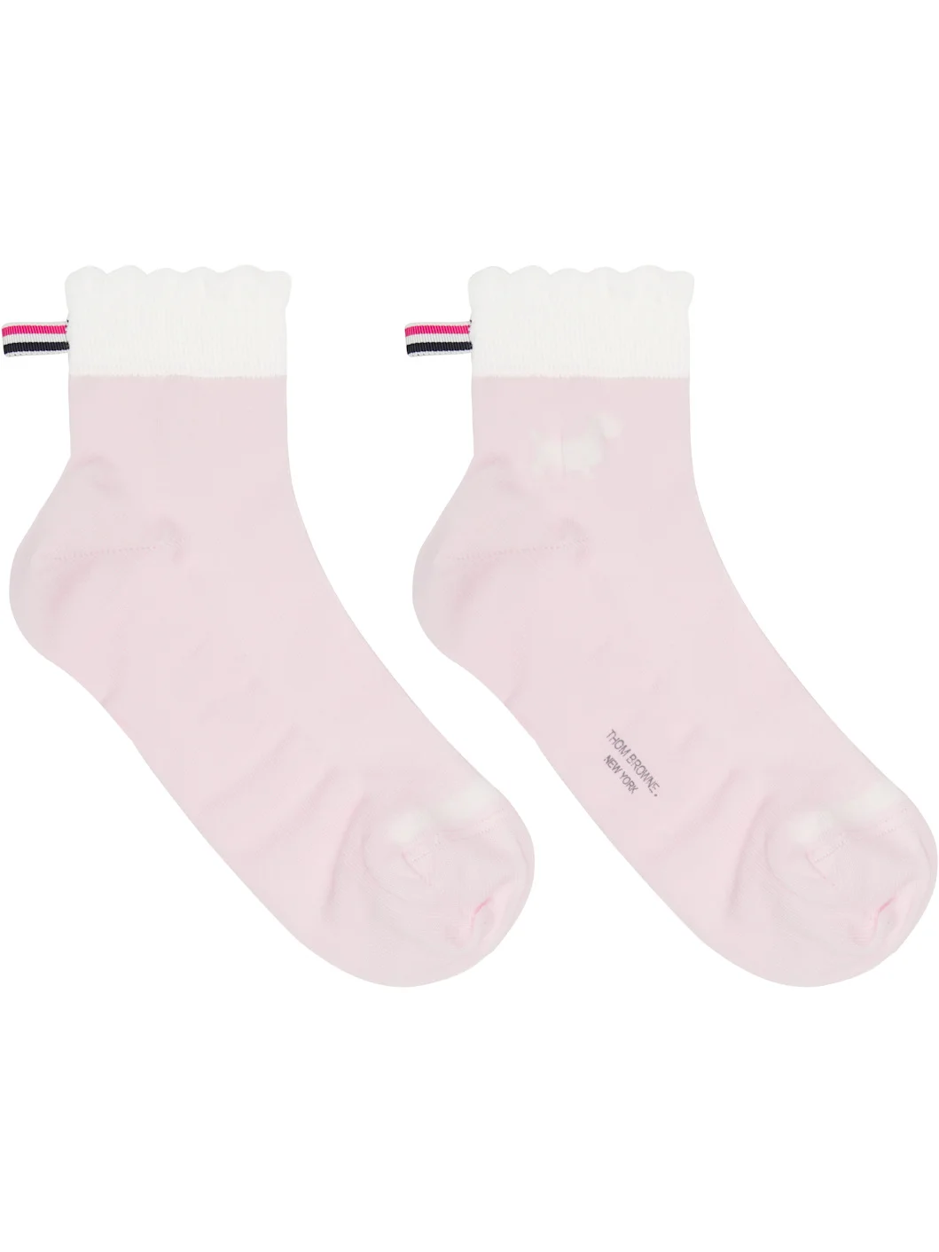 Pair of ankle-high stretch cotton-blend pointelle socks. · Intarsia graphic at side · Scalloped edge and tricolor grosgrain tab at cuffs · Logo stamp at sole Supplier color: Light pink 78% cotton, 20% polyamide, 2% elastane. Made in Italy 261381F076012