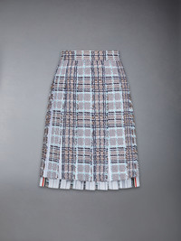 This skirt reframes classic tailoring through the lens of texture and ease. Frayed edges soften the structure, while the summer-weight cotton tweed, woven for breathability and shape, adds tonal dimension with a lightly sculpted hand. Pair with the coordinated Frayed Summer Tweed Pleated Sport Coat to echo the interplay of tradition and texture. Bermuda length Side zip closure with RWB-detailed pull Adjustable waistband strap with buttons Pleats lined with 4-bar striped oxford cotton Side vents with RWB grosgrain trim Stepped hem Tricolor lining Signature striped grosgrain loop tab Model is 5'10" (178 cm), wearing size 40 100% Cotton Combo 1: 100% Cotton Lining: 100% Cupro Made in Italy FGCA44T-F1092-996