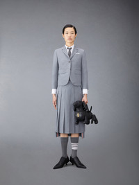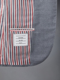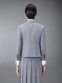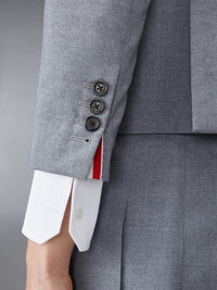 DETAILS & FIT Our Plain Weave School Uniform High Armhole Sport Coat embraces a slimmer fit taken from punk influences, while remaining true to Thom Browne’s classic heritage. Pair with our School Uniform Pleated Mini Skirt. \ Button front closure Notched lapels Single chest pocket Buttoned cuffs with signature striped grosgrain trim Double vented back Striped lining with Interior pocket and name tag Signature striped grosgrain loop tab at back of neck High ArmholeFit 3 \ Model is 5' 10"" (178cm), wearing size 40 \ 50% Wool, 50% Polyester Made in Italy FBC010V-02872-035