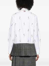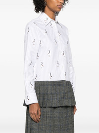 pleated-hem striped shirt Highlights - White - Front button placket - Buttoned cuffs - Rear keeper loop - All-over motif embroidery Made in Italy Composition Cotton 100%, Wool 100% SIZE & FIT Model measurements Height 5 ft 11 in(1.8 m) Bust/Chest 31.49 in(80 cm) Hips 35.82 in(91 cm) Waist 24.8 in(63 cm) FittingInformation Designed for a relaxed fit, this piece allows for comfort and movement when worn Made from a midweight non-stretch fabric Washing instructions Dry Clean Only