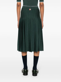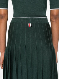 pleated knitted midi skirt Highlights - Dark green/white - Wool-silk blend - Knitted construction - Fully pleated - Signature grosgrain loop tab - Contrasting trim - High-waisted - Ribbed waistband - Straight hem - Mid-length Made in Italy Composition Wool 70%, Silk 30% SIZE & FIT Model measurements Height 5 ft 10 in(1.77 m) Bust/Chest 33.07 in(84 cm) Hips 37 in(94 cm) Waist 24.8 in(63 cm) FittingInformation This midi-length skirt is intended to be worn high on the waist The elasticated waist allows for a comfortable fit The pleated construction on this piece allows for additional movement and flexibility in the fit This piece fits true to size – take your usual size