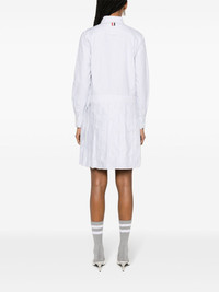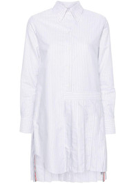 pleated striped shirt dress Thom Browne presents its contemporary take on classic styles, as seen with this shirt dress. Cut from crisp cotton, it's emblazoned with a multi-way stripe design and fitted with a pleated skirt. Highlights - White/ash grey - Cotton - Vertical stripe pattern - Button-down collar - Front button fastening - Long sleeves - Buttoned cuffs - Pleated skirt - Short side slits - Thigh-length Made in Italy Composition Cotton 100% SIZE & FIT Model measurements Height 5 ft 11 in(1.8 m) Bust/Chest 31.49 in(80 cm) Hips 35.82 in(91 cm) Waist 24.8 in(63 cm) FittingInformation Designed for a relaxed fit, this piece allows for comfort and movement when worn Made from a midweight non-stretch fabric This piece fits true to size – take your usual size Washing instructions Dry Clean Only