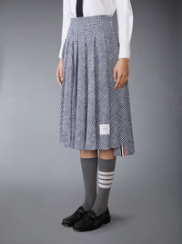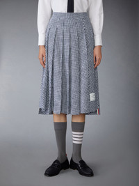 GINGHAM COTTON TWEED PLEATED SKIRT