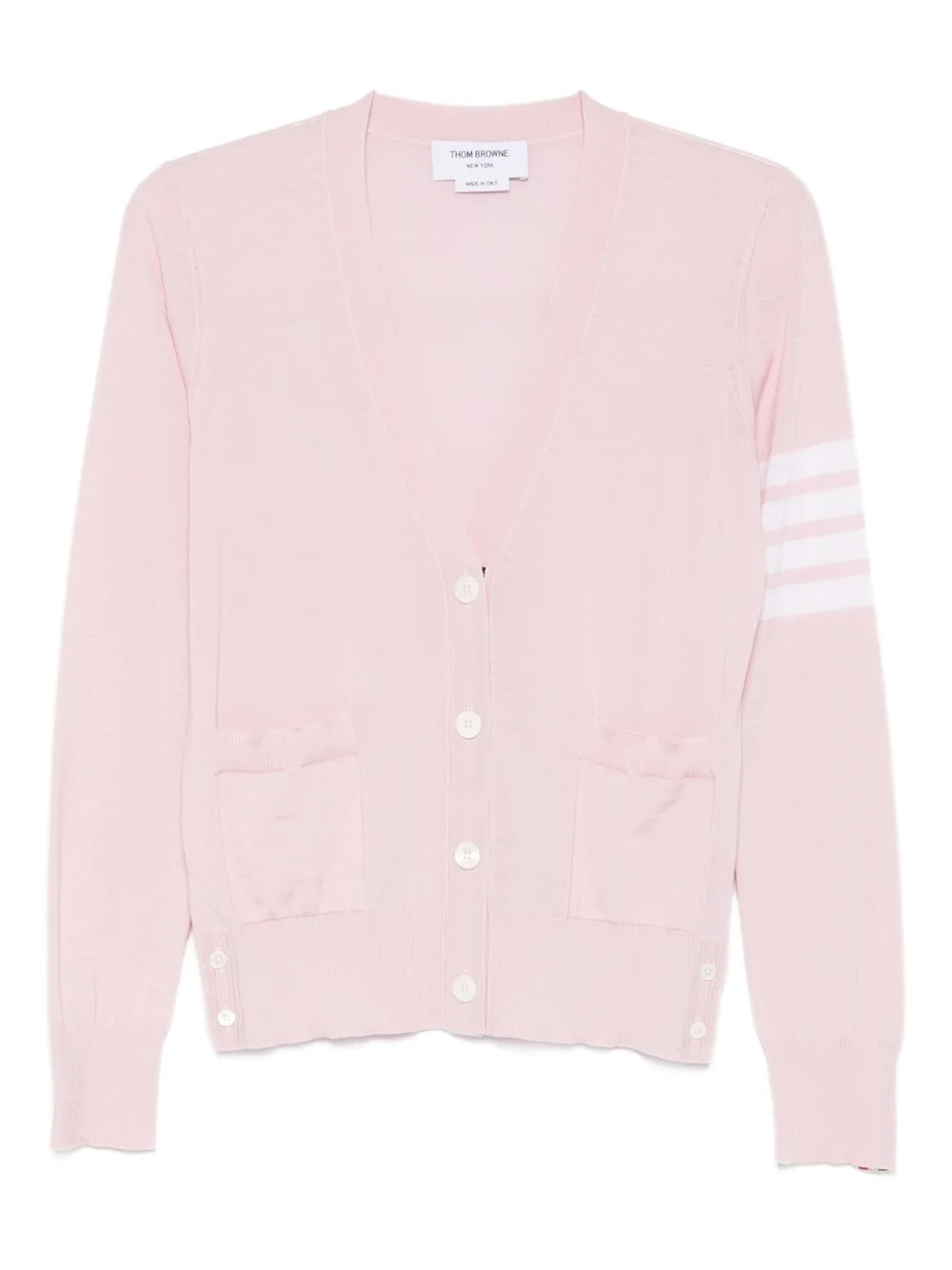 pocket stripe sweater Highlights - Pink - Stripe detail - Front pockets - Button fastening - V-neck - Long sleeves Made in Italy Composition Virgin Wool 100% SIZE & FIT Model measurements Height 5 ft 9 in(1.75 m) Bust/Chest 32.67 in(83 cm) Hips 36.22 in(92 cm) Waist 24.8 in(63 cm) Washing instructions Hand Wash