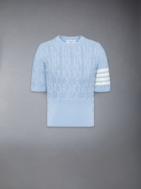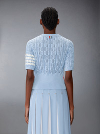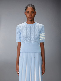 Inspired by preppy American country life, this elegant tee features a romantic pointelle stitch and signature 4-bar detailing. A versatile piece, it pairs effortlessly with any of our trousers or dress shirts for a sophisticated yet casual look. 4-bar detailing Buttoned side vents with signature striped grosgrain trim Signature striped grosgrain loop tab Model is 5'10" (178 cm), wearing size 40 100% Cotton Made in Italy FKA495A-Y3017-480 FKA495A-Y3017-480