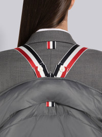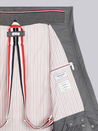 DETAILS & FIT The pinnacle of cold-weather sophistication — our Downfilled Twill 4-Bar Ski Jacket. Signature Thom Browne emblems put a twist on fine winter wear. Front zip closure Side zip pockets Snap button cuffs Stripe Rib collar and cuffs Signature striped grosgrain loop tab at back of neck Model is 5' 10" (178cm), wearing size 40 100% Polyester Combo1: 100% Polyester Padding: 80% White Goose Down, 20% White Goose Feathers Lining: 100% Polyester Made in Italy FBD048X-07259-035