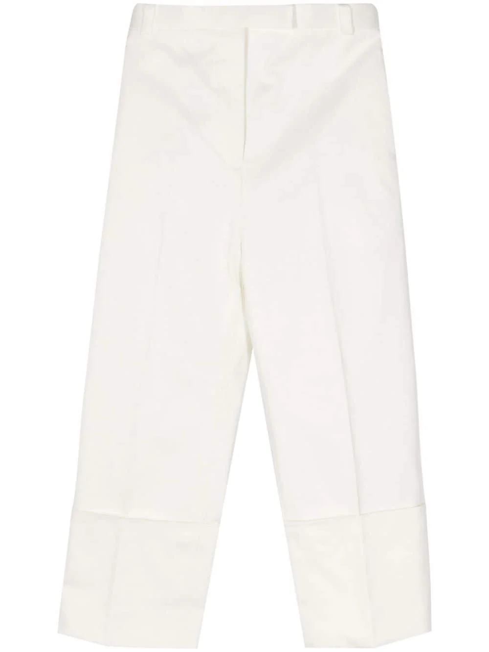pressed-crease tapered trousers Highlights - Off-white - Cotton - Twill weave - Belt loops - Two side welt pockets - Pressed crease - Two rear welt pockets - Tapered leg - Turn-up cuffs - Concealed front button, hook and zip fastening Imported Composition Outer: Cotton 100% Lining: Cupro 100%