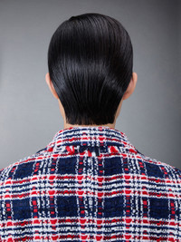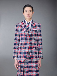 DETAILS & FIT Elongated single button sport coat in Prince of Wales checked chenille tweed with allover frayed detailing. Front button closure, notched lapels, 2 flap front pockets, single chest pocket. Buttoned cuffs with signature striped grosgrain trim. Double vented back hem. Striped lining with interior pocket and name tag. Signature striped grosgrain loop tab at back of neck. Model is 5'10" (178 cm), wearing size 40 Lining:100% Silk Made in Italy FBC862TF0361960