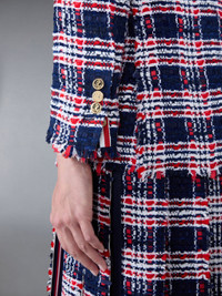 Prince of Wales Check Frayed Chenille Tweed Elongated Sport Coat