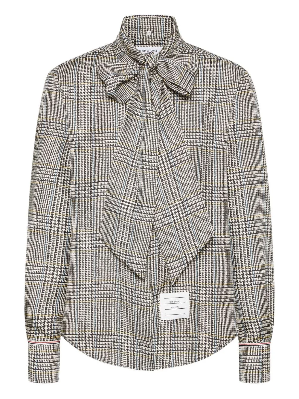 hunting-tweed silk twill shirt Highlights - Black and white - Houndstooth pattern - Long sleeves - Tie-fastening collar - Bow tie Made in Italy Composition Fabric 100% Washing instructions Read Manufacturer Guidelines