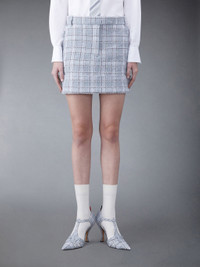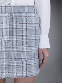 Prince of Wales Check Tweed Frayed Sack Mini Skirt