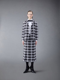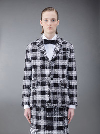 Classic sport coat in frayed Prince of Wales chenille tweed. Front button closure, notched lapels, 2 flap front pockets, single chest pocket. Buttoned cuffs with signature striped grosgrain trim. Double vented back hem. Striped lining with interior pocket and name tag. Signature striped grosgrain loop tab at back of neck. Classic - Fit 1. Model is 5'10" (178 cm), wearing size 40. Lining:100% Silk Made in Italy FBC700T-F0363-001