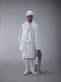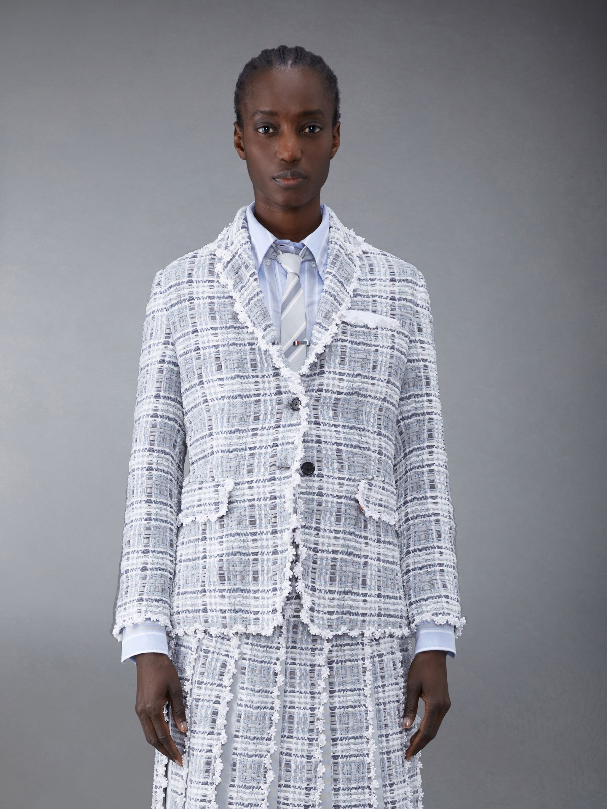 DETAILS & FIT Classic sport coat in Prince of Wales checked chenille tweed with wavy pearl lace tipping trim. 3-button front closure, notched lapels, 2 flap front pockets, single chest pocket. Buttoned cuffs with signature striped grosgrain trim. Double vented back hem. Signature striped grosgrain loop tab at back of neck. Classic - Fit 1. Model is 5'10" (178 cm), wearing size 40 Lining:100% Silk Made in Italy FBC700EE0610035