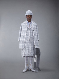 Classic sport coat in Prince of Wales checked chenille tweed with wavy pearl lace tipping trim. 3-button front closure, notched lapels, 2 flap front pockets, single chest pocket. Buttoned cuffs with signature striped grosgrain trim. Double vented back hem. Signature striped grosgrain loop tab at back of neck. Classic - Fit 1. Model is 5'10" (178 cm), wearing size 40 Lining:100% Silk Made in Italy FBC700E-E0610-035