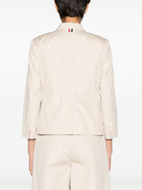 rounded-collar single-breasted blazer Thom Browne combines sportswear and classic tailoring inspirations to present this single-breasted jacket, crafted from blush beige cotton. Cut to a slightly cropped boxy silhouette, it's softened by the rounded collar. Highlights - Blush beige - Cotton - Rounded collar - Front button fastening - Long sleeves - Three front patch pockets - Straight hem Made in Italy Composition Outer: Polyester 65%, Cotton 35% Lining: Cupro 100%, Cotton 100% SIZE & FIT Model measurements Height 5 ft 11 in(1.8 m) Bust/Chest 33.07 in(84 cm) Hips 37 in(94 cm) Waist 25.59 in(65 cm) FittingInformation Designed for a relaxed fit, this piece allows for comfort and movement when worn Constructed with narrow shoulders Made from a midweight non-stretch fabric This piece fits true to size – take your usual size