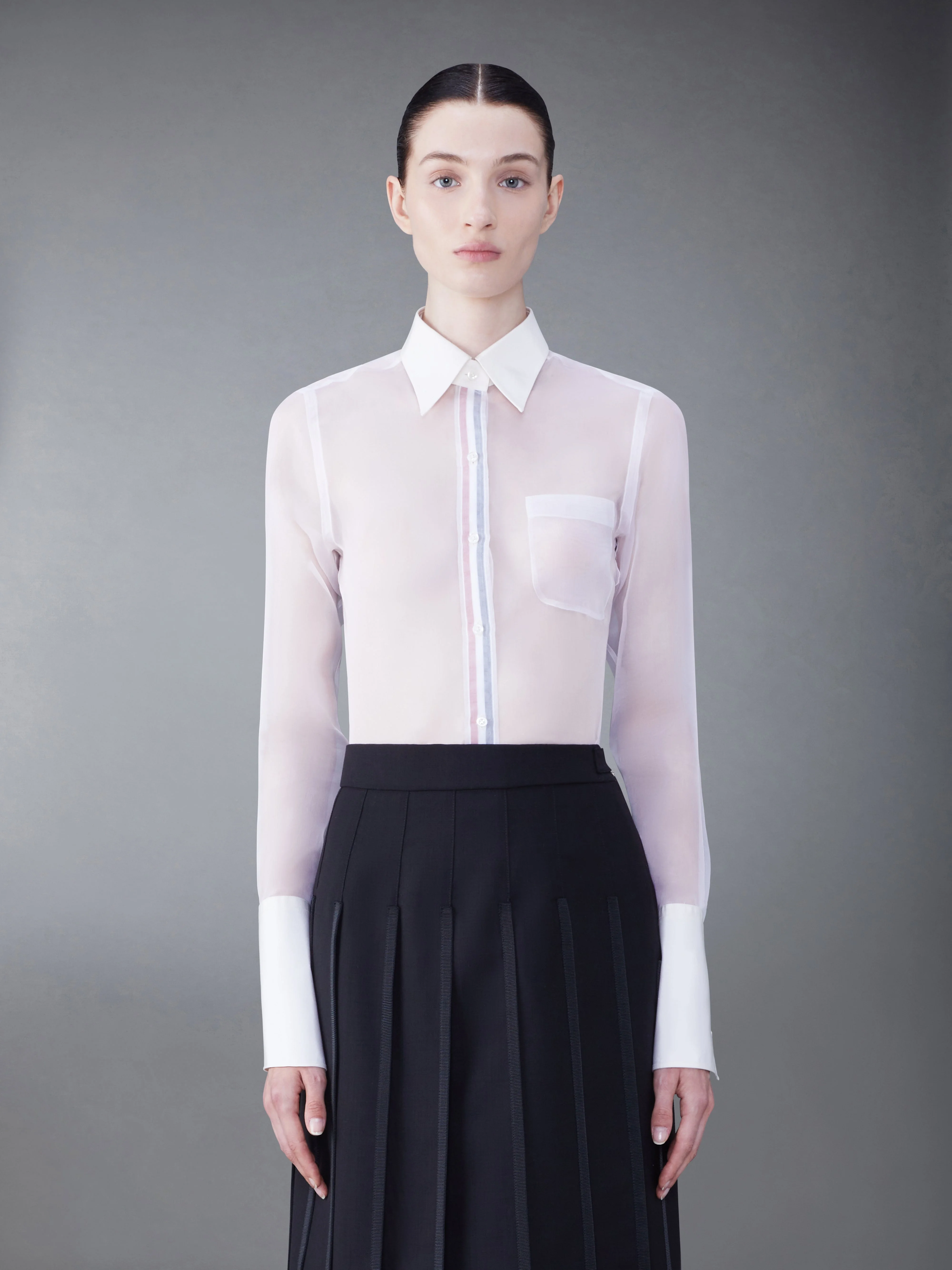 DETAILS & FIT A springtime essential, this airy limited-edition shirt exhibits quality craftsmanship and meticulous tailoring. Front button closure Single patch pocket Seamed back yoke with locker loop Signature striped grosgrain loop tab Model is 5'10" (178 cm), wearing size 40 100% Silk Combo1: 100% Silk FLL030O-03018-100