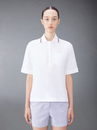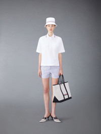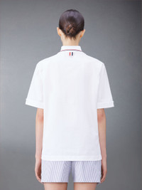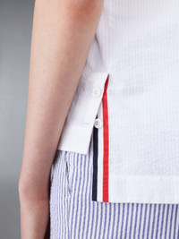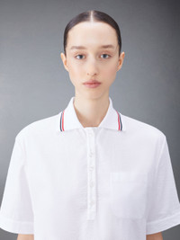 DETAILS & FIT Effortless style meets sophistication in this breathable shirt. A classic polo collar pays homage to our sporty heritage, while breezy seersucker fabric is a celebration of the spring season. Partial front button placket Patch chest pocket Buttoned side vents with signature grosgrain trim Signature striped grosgrain loop tab Model is 5'10" (178 cm), wearing size 40 100% Cotton Combo1: 95% Cotton, 3% Polyamide, 2% Elastane Made in Italy FTU419A-00572-100