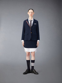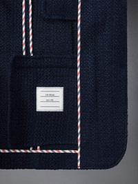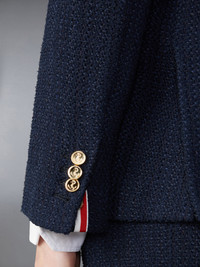 DETAILS & FIT This dapper sport coat exudes Thom Browne's mastery of innovative design. Featuring crisp tailoring and elegant tweed fabric, this piece will serve as a staple in your fall wardrobe for years to come. Front button closure 2 flap pockets Single chest pocket Buttoned cuffs with signature striped grosgrain trim Double vented back Interior name tag Signature striped grosgrain loop tab Fit 1 - Classic Model is 5'10" (178 cm), wearing size 40 57% Cotton, 18% Polyester, 12% Polyamide, 8% Wool, 4% Lyocell, 1% Viscose Made in Italy FBC700U-F0721-415