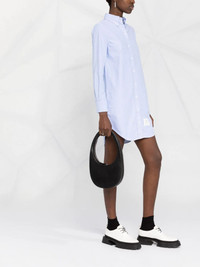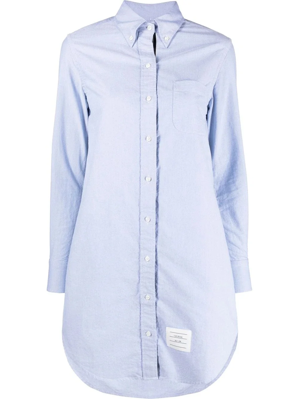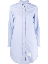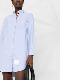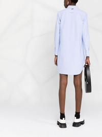 RWB trim shirt dress Thom Browne designs this short shirt dress from crisp light-blue cotton for a lightweight feel. Part of the brand's SS22 edit, this piece is crafted in Italy and adorned with a signature RWB trim at the front and rear, elevating its buttoned fastening and curved hem. Made in Italy Composition Cotton 100%, Polyester 100% SIZE & FIT Model measurements Height 5 ft 11 in(1.8 m) Bust/Chest 32.67 in(83 cm) Hips 36.22 in(92 cm) Waist 24.4 in(62 cm) FittingInformation Designed to be unstructured, offering a loose fit throughout Made from a midweight non-stretch fabric, this piece offers minimal elasticity when worn This piece fits true to size – take your usual size Washing instructions Machine Wash