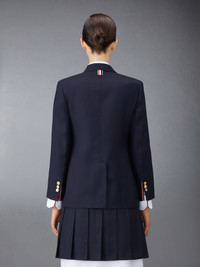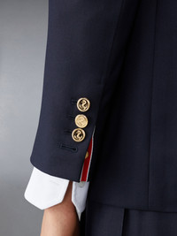 DETAILS & FIT Our Twill Sack Sport Coat embraces a relaxed, wide fit for ultimate comfort while remaining true to Thom Browne’s classic heritage. Front button closure 3 patch pockets Notched lapels Buttoned cuffs with signature striped grosgrain trim Signature striped grosgrain loop tab at back of neck Model is 5' 10" (178cm), wearing size 40 100% Wool Made in Italy FBC334A-00626-415