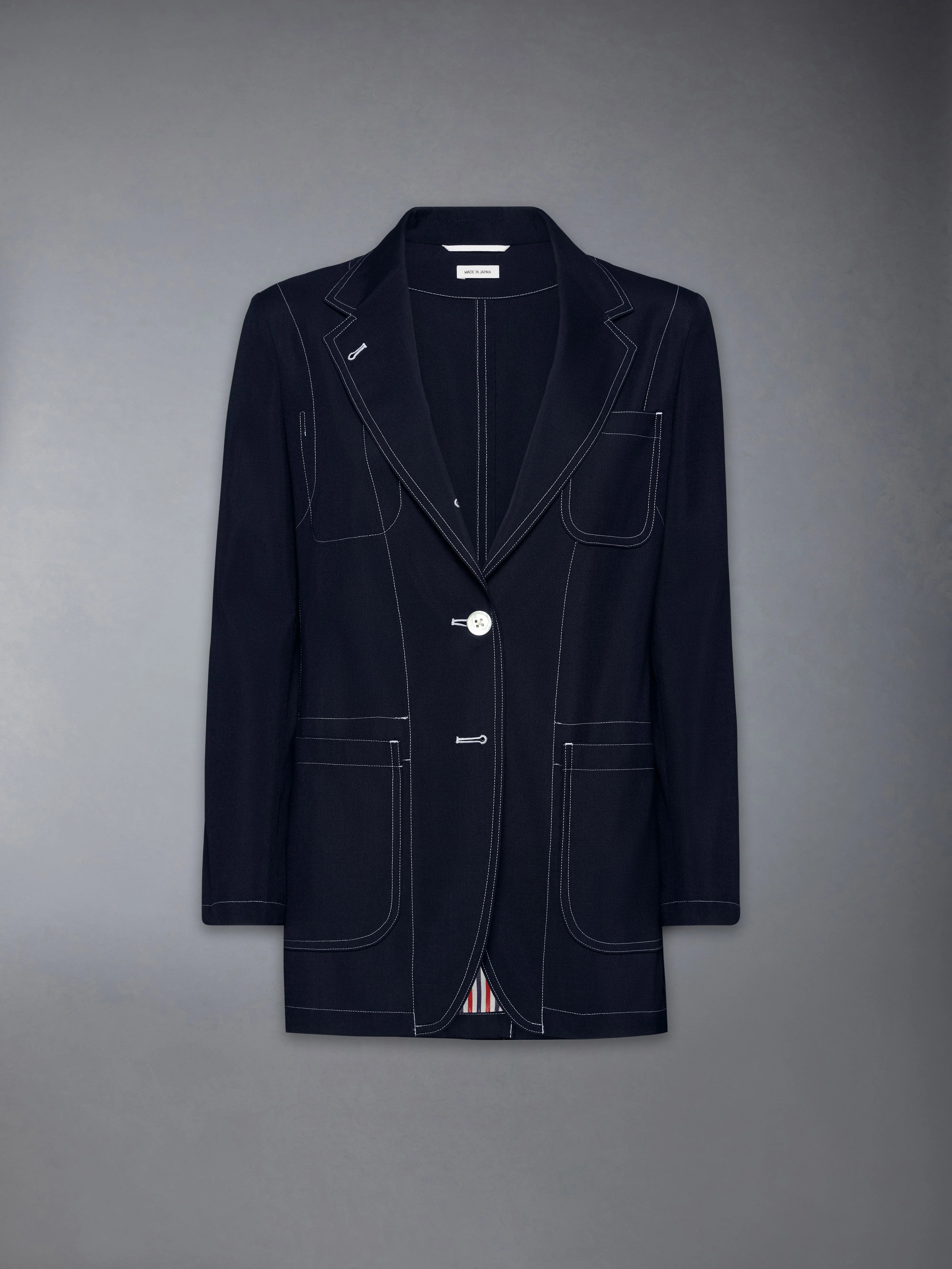 DETAILS & FIT A weighted layer with distinct contrast stitching, perfect for transitional dressing. Front button closure 3 Front patch pockets Interior name tag Signature striped grosgrain loop tab Model is 5'10" (178 cm), wearing size 40 50% Wool, 50% Polyester Lining: 100% Cupro Made in Japan FBC927U-02872-415