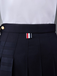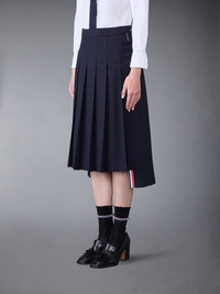 Plain Weave 4-Bar Dropped Back Pleated Skirt