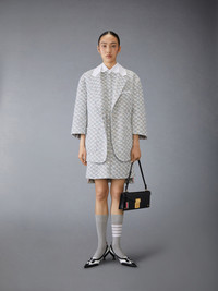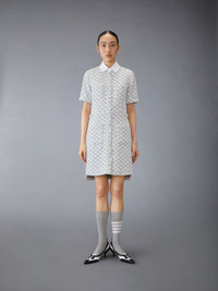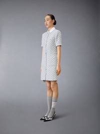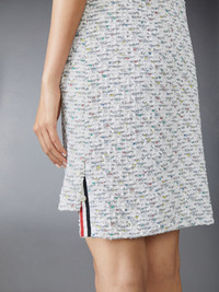 DETAILS & FIT Crafted from luxurious tweed, this spirited dress is adorned with colorful stitches that evoke confetti and shimmering textured sequins that dance in the light. A true celebration of spring, this enchanting piece is destined to become a cherished staple in your wardrobe for years to come. Our sequin tweed is woven with white chain thread, tulle, wooly yarn, sequins, and shiny ribbon. Front button closure 4 Front patch pockets Dropped back hem with signature striped grosgrain trim Signature striped grosgrain loop tab Model is 5'10" (178 cm), wearing size 40 55% Polyamide, 27% Polyester, 12% Virgin Wool, 6% Viscose Combo 1: 100% Silk Lining: 100% Silk Made in Italy FDSF05C-F0801-035