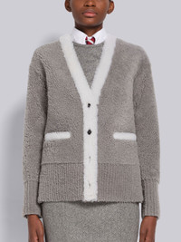 Shearling Contrast Trim V-Neck Cardigan Jacket
