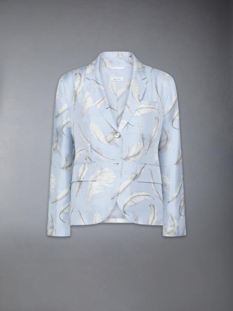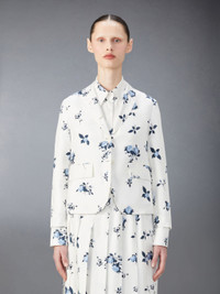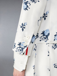 DETAILS & FIT Elegant roses are dispersed against luxurious silk fabric. Tailored to perfection, this limited-edition sport coat will effortlessly elevate trousers or skirts. Pair it with our Classic Silk Floral Pleated Skirt and leave a lasting impression. Front button closure 2 Flap pockets Single chest pocket Buttoned cuffs with signature striped grosgrain trim Double back vent Signature striped grosgrain loop tab Fit 3 - High Armhole Model is 5'10" (178 cm), wearing size 40 100% Silk Lining: 100% Silk FBC812A-F0677-100