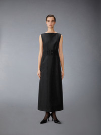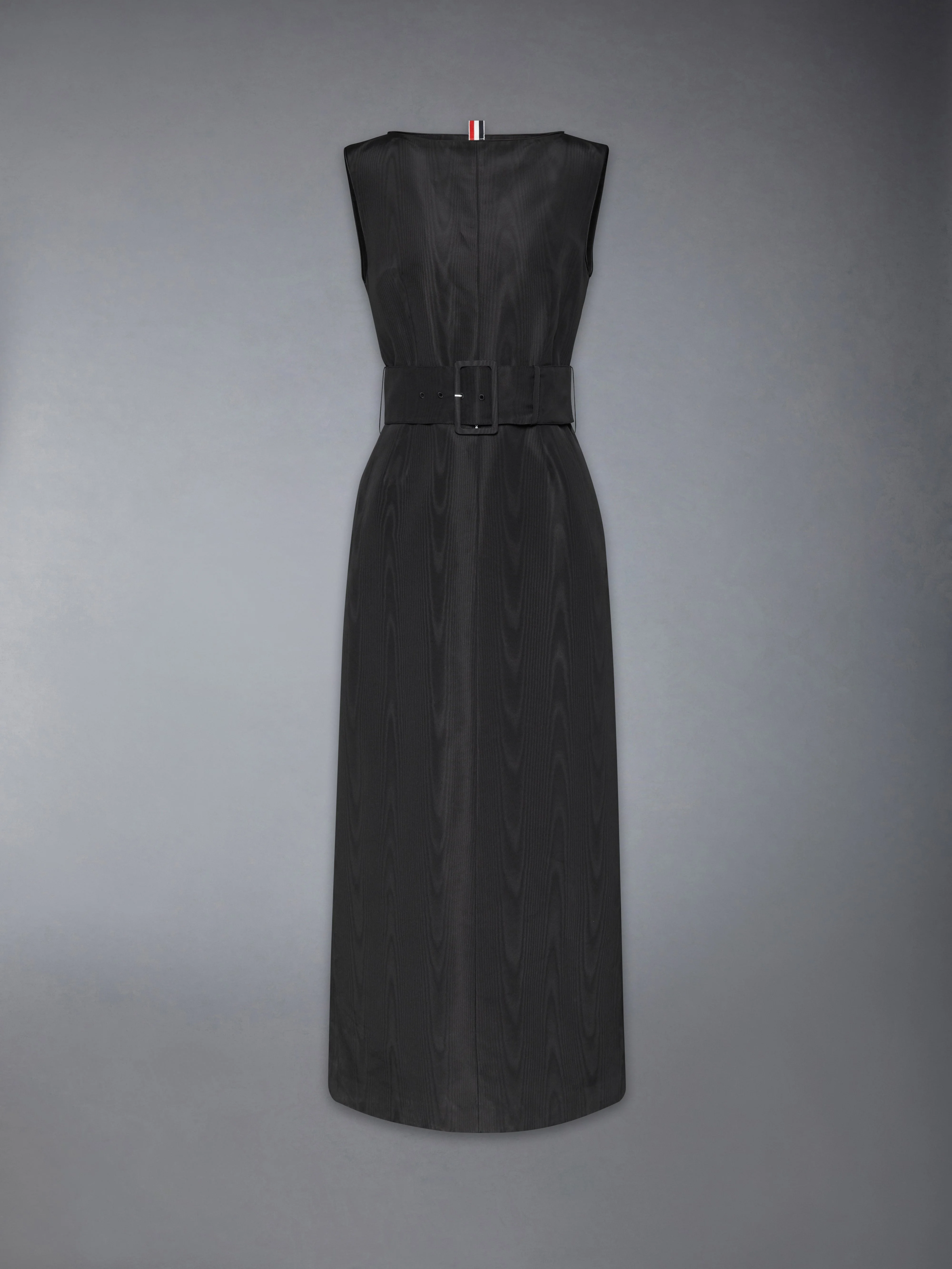 SILK MOIRE BOAT NECK COLUMN DRESS