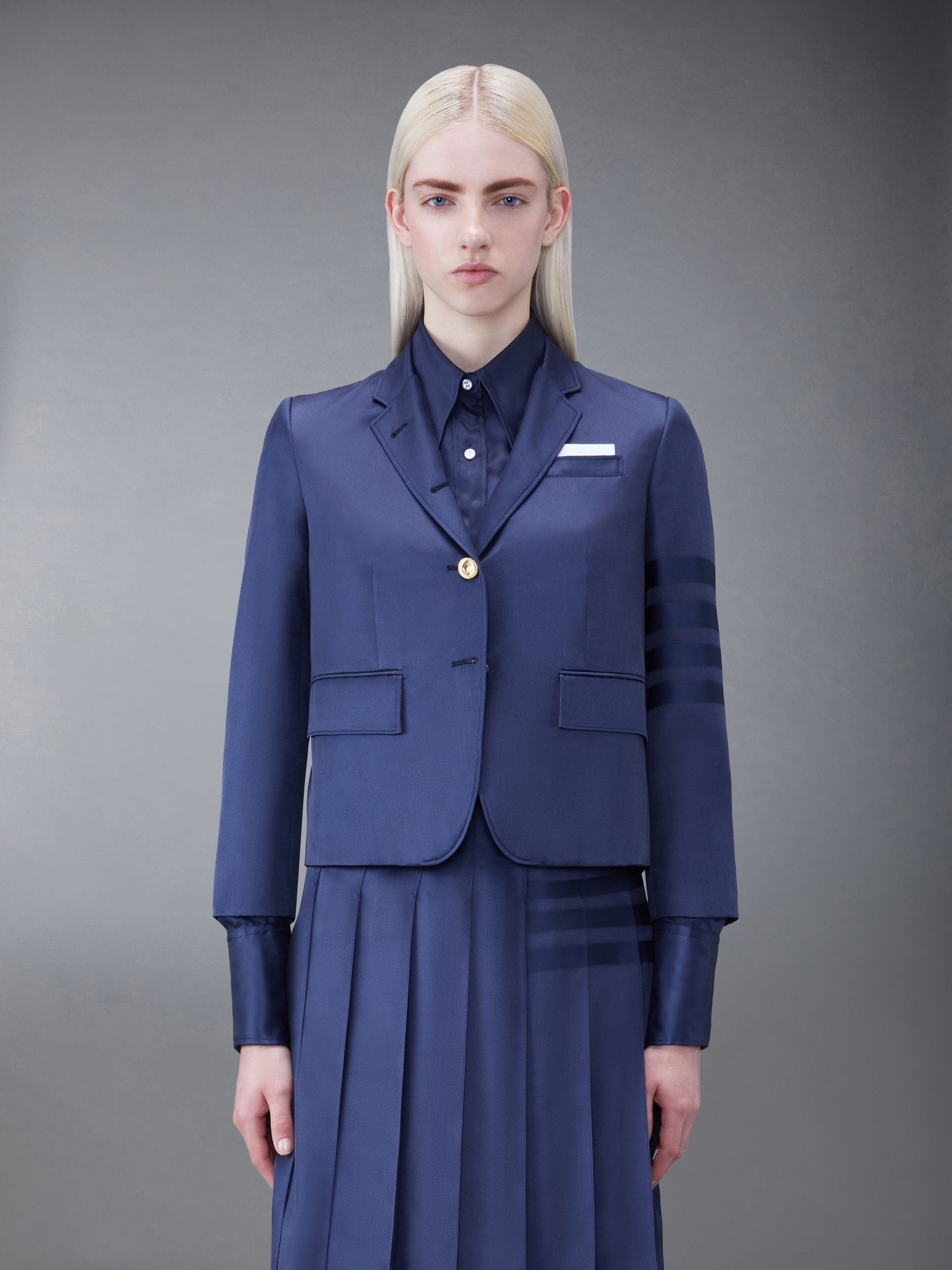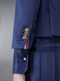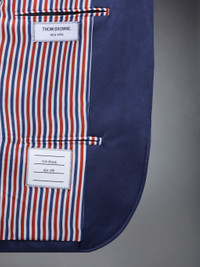 DETAILS & FIT This dapper sport coat exudes Thom Browne's mastery of innovative design and tailored excellence. A limited-edition piece that will serve as a staple in your spring wardrobe for years to come. 4-Bar detailing Front button closure 2 Flap pockets Single chest pocket Buttoned cuffs with signature striped grosgrain trim Striped lining with interior pocket and name tag Signature striped grosgrain loop tab Fit 3 Model is 5'10" (178 cm), wearing size 40 98% Silk, 2% Viscose Lining: 100% Silk FBC646A-F0527-415