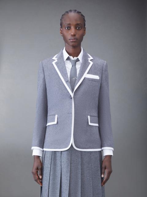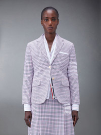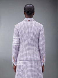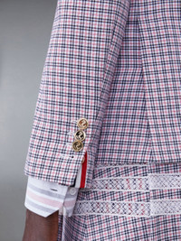 DETAILS & FIT This dapper sport coat exudes Thom Browne's mastery of innovative design and tailored excellence. Featuring a playful check pattern, this limited-edition piece will serve as a staple in your spring wardrobe for years to come. 4-Bar detailing 2 Flap pockets Single chest pocket Buttoned cuffs with signature striped grosgrain trim Striped lining with interior pockets and name tag Double vented back Signature striped grosgrain loop tab Fit 1 Model is 5'10" (178 cm), wearing size 40 98% Cotton, 2% Polyamide Combo1: 100% Polyester Lining: 100% Cupro FBC637E-E0830-960